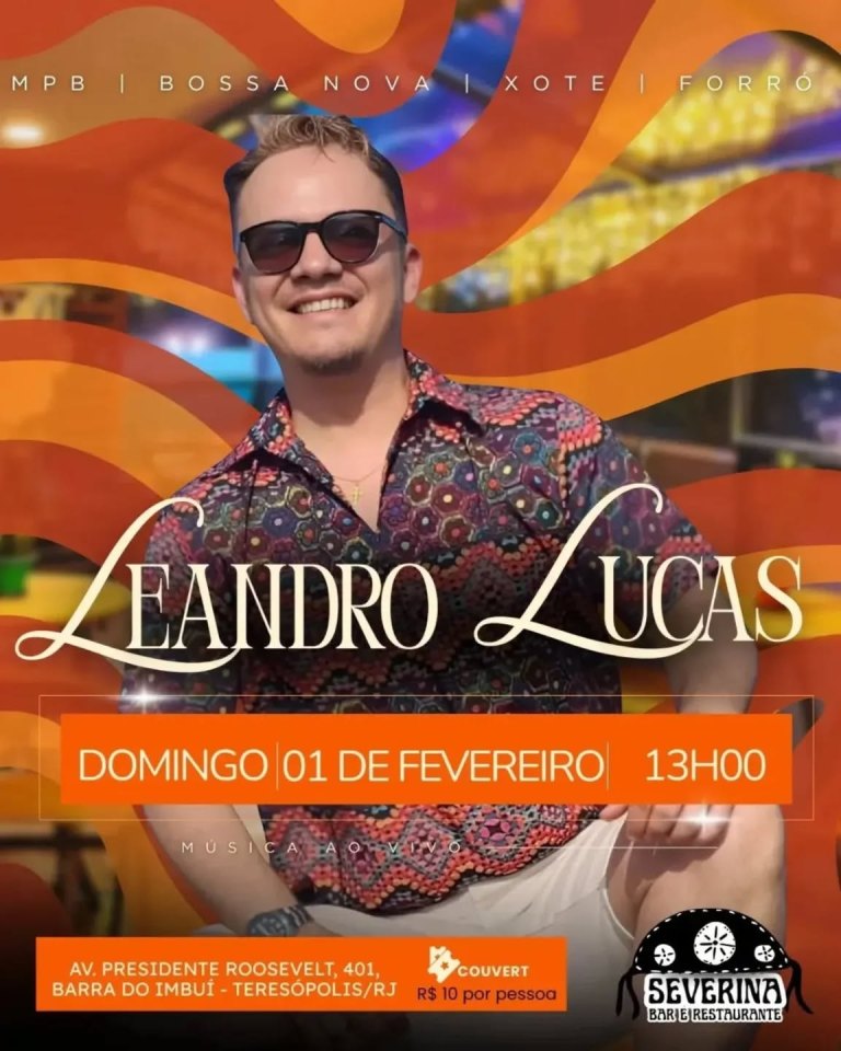 Dia 01/02/2026 (dom)- 13h Leandro Lucas no Severina Bar e restaurante em Teresópolis RJ