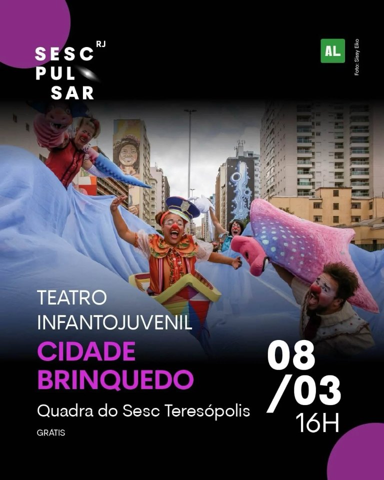 agenda culturalculturadestaqueseventosserra cariocaSescteatrotereteresopolis Dia 08-03 teatro Cidade Brinquedo no Sesc Teresópolis 3 de março de 2026 tere_total Dia 08-03 teatro Cidade Brinquedo no Sesc Teresópolis Dia 08/03/2026 (dom)- 16h teatro infantojuvenil Cidade Brinquedo na quadra no Sesc Teresópolis RJ Endereço: Av. Delfim Moreira, 749 – Várzea, Teresópolis – RJ Fonte: Sesc Teresópolis