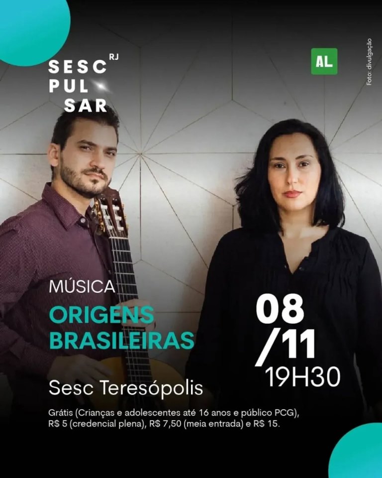 agenda culturalculturadestaqueseventosmúsicaserra cariocaSesctereteresopolis Dia 08-11 Origens Brasileiras no Sesc Teresópolis 3 de novembro de 2025 tere_total Dia 08-11 Origens Brasileiras no Sesc Teresópolis Dia 08/11/2025 (sáb)- 19h30 – música – Origens Brasileiras no Sesc Teresópolis RJ Endereço: Av. Delfim Moreira, 749 – Várzea, Teresópolis – RJ Fonte: Sesc Teresópolis