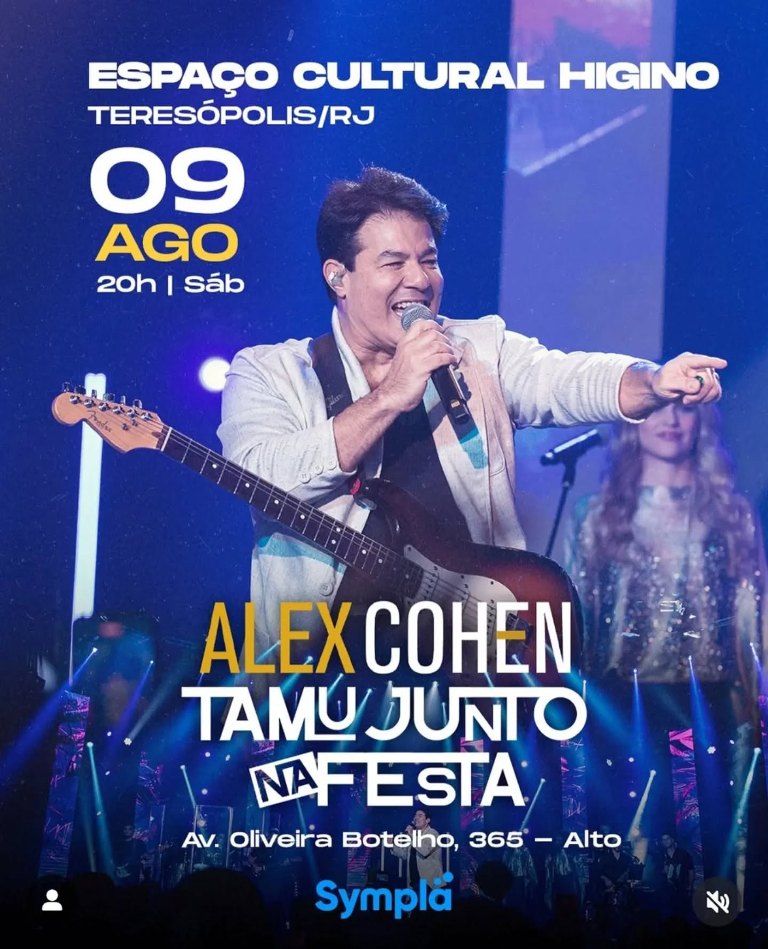 Dia 09/08/2025 (sáb)- 20h Alex Cohen com Tamu Junto na festa no Espaço Cultural Higino em Teresópolis RJ