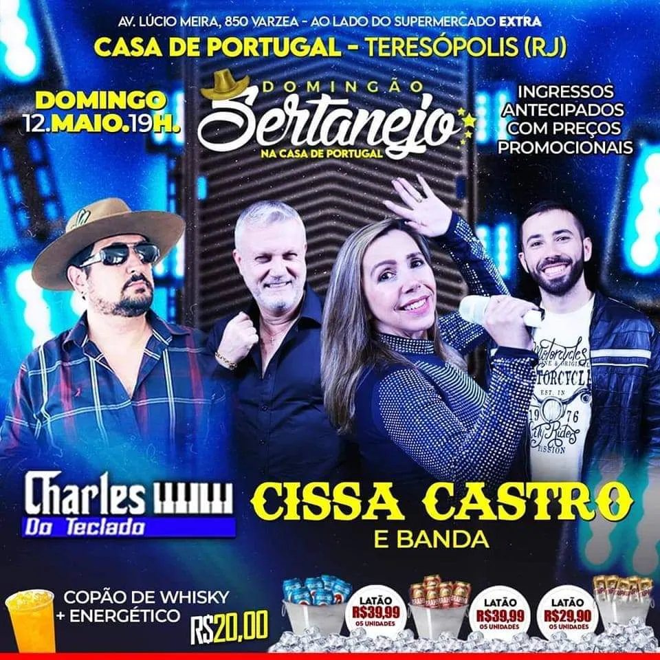 Dia 12/05/2024 (dom)– 19h Domingão Sertanejo com Charles do Teclado e Cissa Castro e banda na Casa de Portugal de Teresópolis RJ