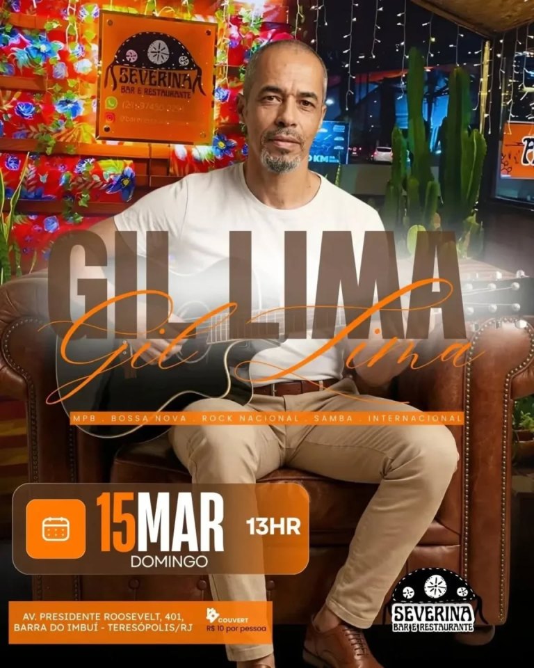 Dia 15/03/2026 (dom)- 13h Gil Lima no Severina Bar e restaurante em Teresópolis RJ