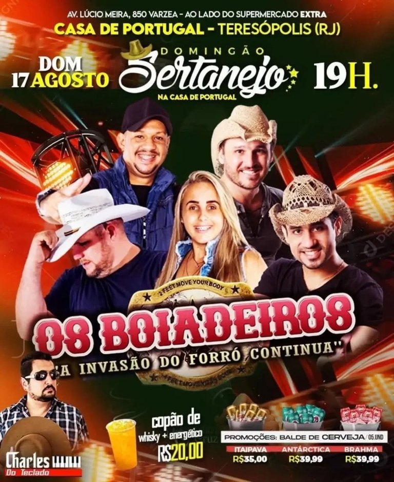 Dia 17/08/2025 (dom)- 19h- Domingão Sertanejo com Charles do Teclado e Os Boiadeiros na Casa de Portugal de Teresópolis RJ
