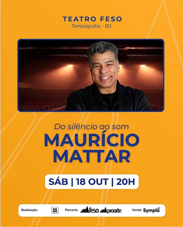 Dia 18/10/2025 (sáb)– 20h Maurício Mattar com o show ” Do Silêncio ao Som” no teatro Feso em Teresópolis RJ