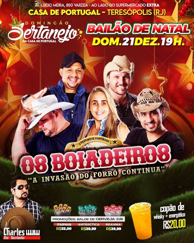Dia 21/12/2025 (dom)- 19h- Domingão Sertanejo especial Bailão de Natal com Charles do Teclado e Os Boiadeiros na Casa de Portugal de Teresópolis RJ