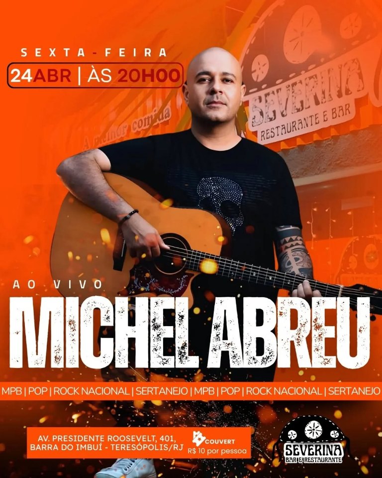 Dia 24/04/2026 (sex)- 20h Michel Abreu no Severina Bar e restaurante em Teresópolis RJ