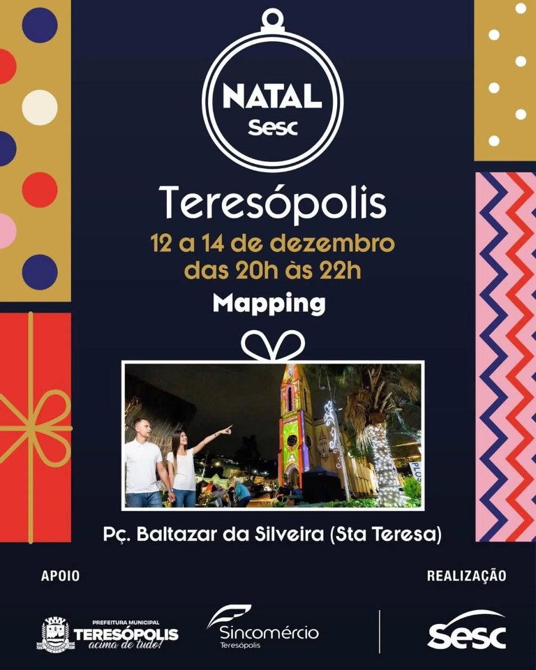 De 12 à 14/12/2025 ( sex a dom)- das 20 às 22h- Vídeo Mapping na Praça de Santa Teresa na Várzea em Teresópolis RJ
